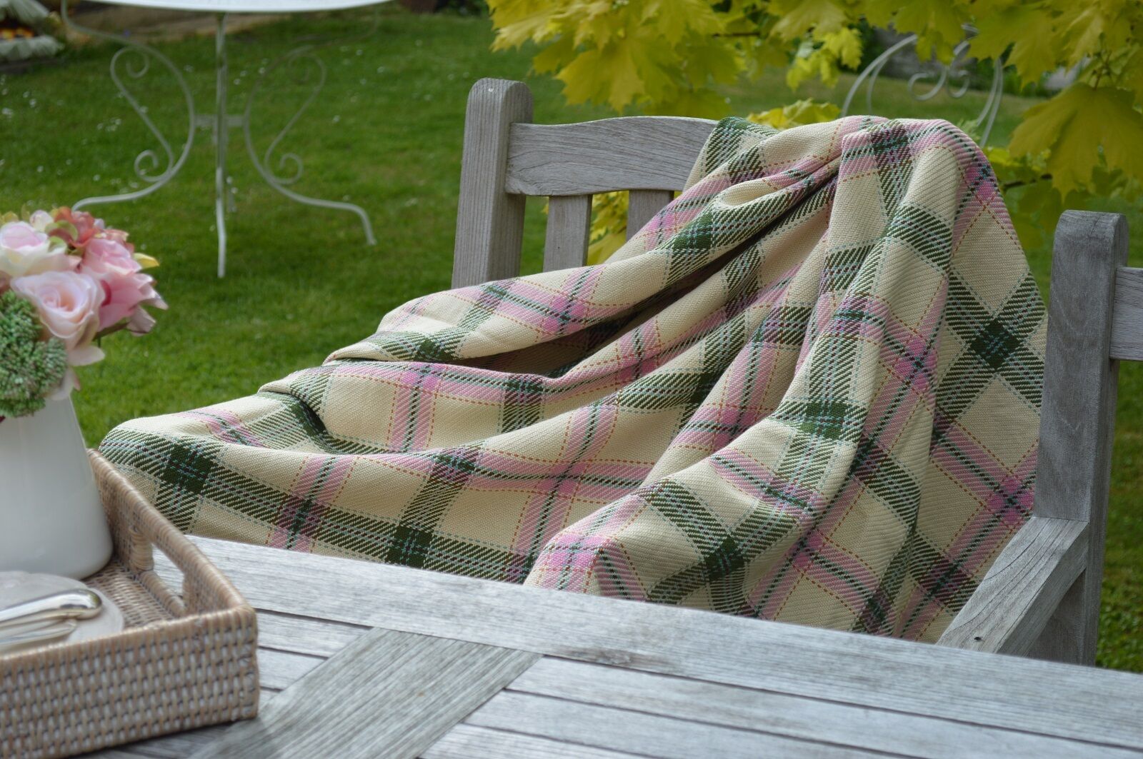 THROW, 100% Cotton Lulworth Cream Check Picnic Blanket Bedspread 135x152cm