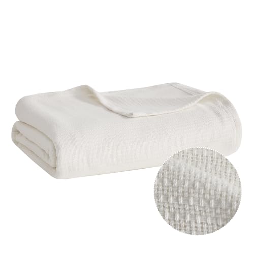 Madison Park Freshspun Basketweave Luxury Cotton Blanket Cream 66x90 Twin Size Basketweave Premium Soft Cozy 100% Cotton For Bed, Couch or Sofa