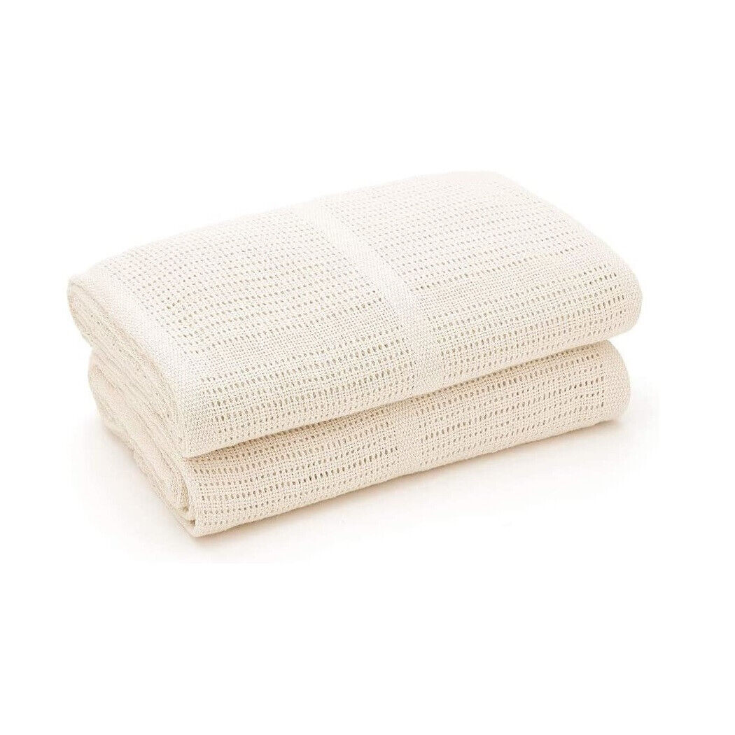 Premium Quality Cot Bed Pure Cotton Cellular Blanket Cream