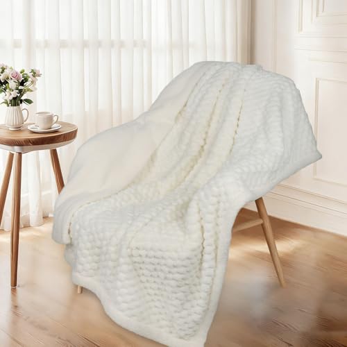 BEDELITE Fluffy Fleece Twin Blanket - Cream White Couch Throw Soft Cosy Warm Blankets for Double Bed, Gifts for Women
