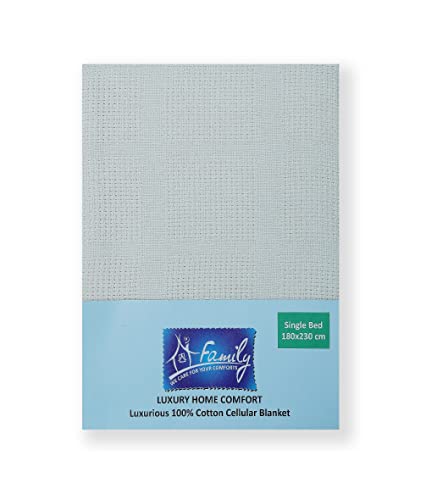 Family Bedding Cream Cotton Cellular Blanket – Single Bed | Reversible Lightweight Thermal Throw | Soft Traditional Design (180 x 230 cm)