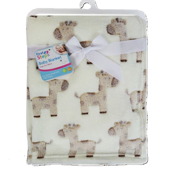 FIRST STEPS SOFT FLEECE NEWBORN BABY BLANKET CREAM GIRAFFE DESIGN