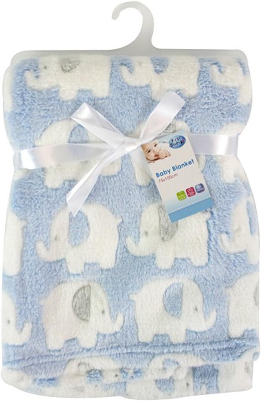 FIRST STEPS SOFT FLEECE NEWBORN BABY BLANKET CREAM ELEPHANT DESIGN