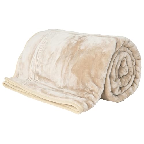 Rohi Luxury Fleece Throw Blanket King Size - Super Soft Warm & Fluffy Blanket - Cream Throw for Sofa - Couch Throw Fleece Blanket - 200x240cm