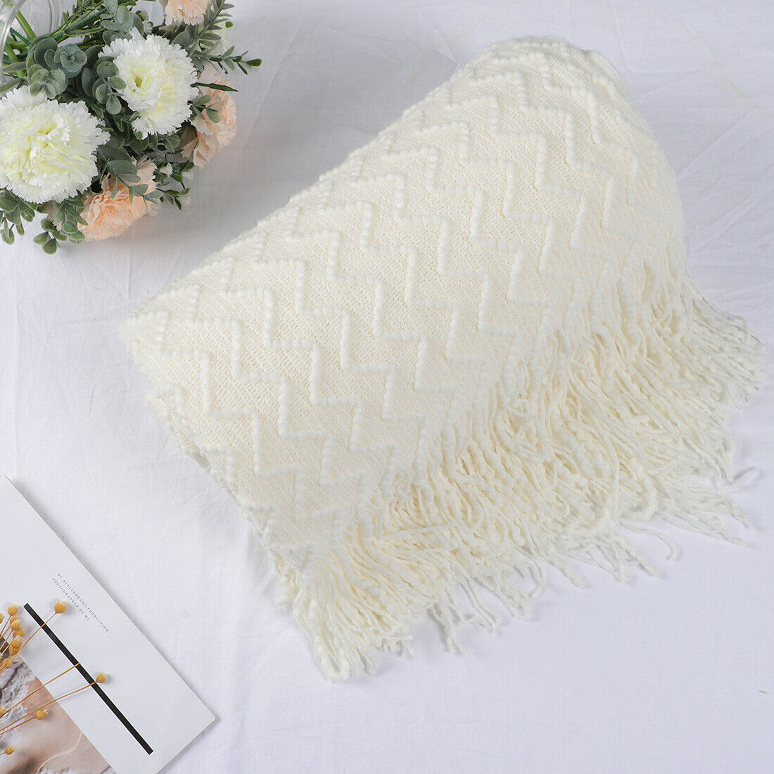 Throw Blanket for Sofa Couch, Knit Woven Blanket,Cream White Throw (50" *60")