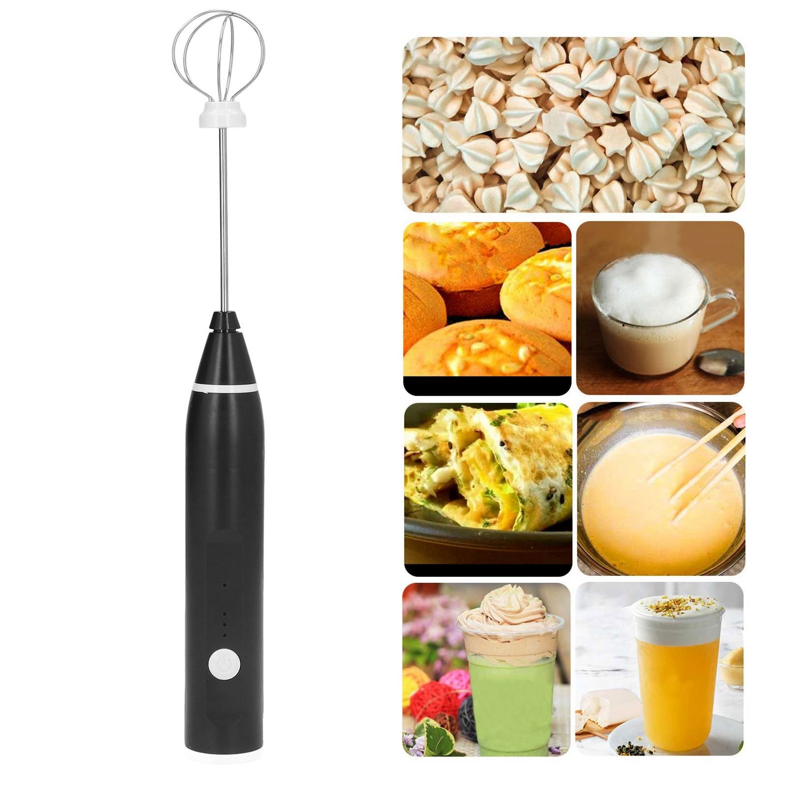 (Black) Rechargeable Electric Milk Frother Automatic Kitchen Juice Food Mixer Cream Egg Beater Blender