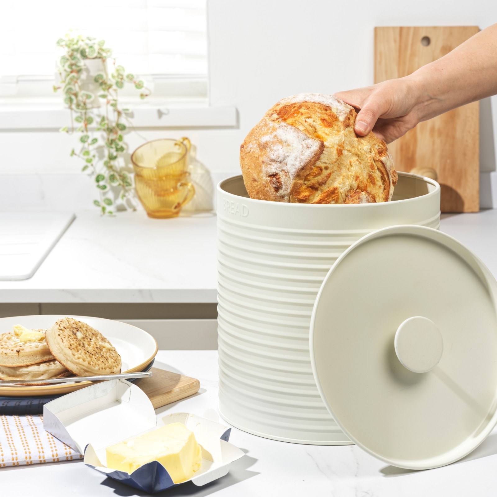 Russell Hobbs Bread Bin Ribbed Large Kitchen Canister Countertop Storage Cream
