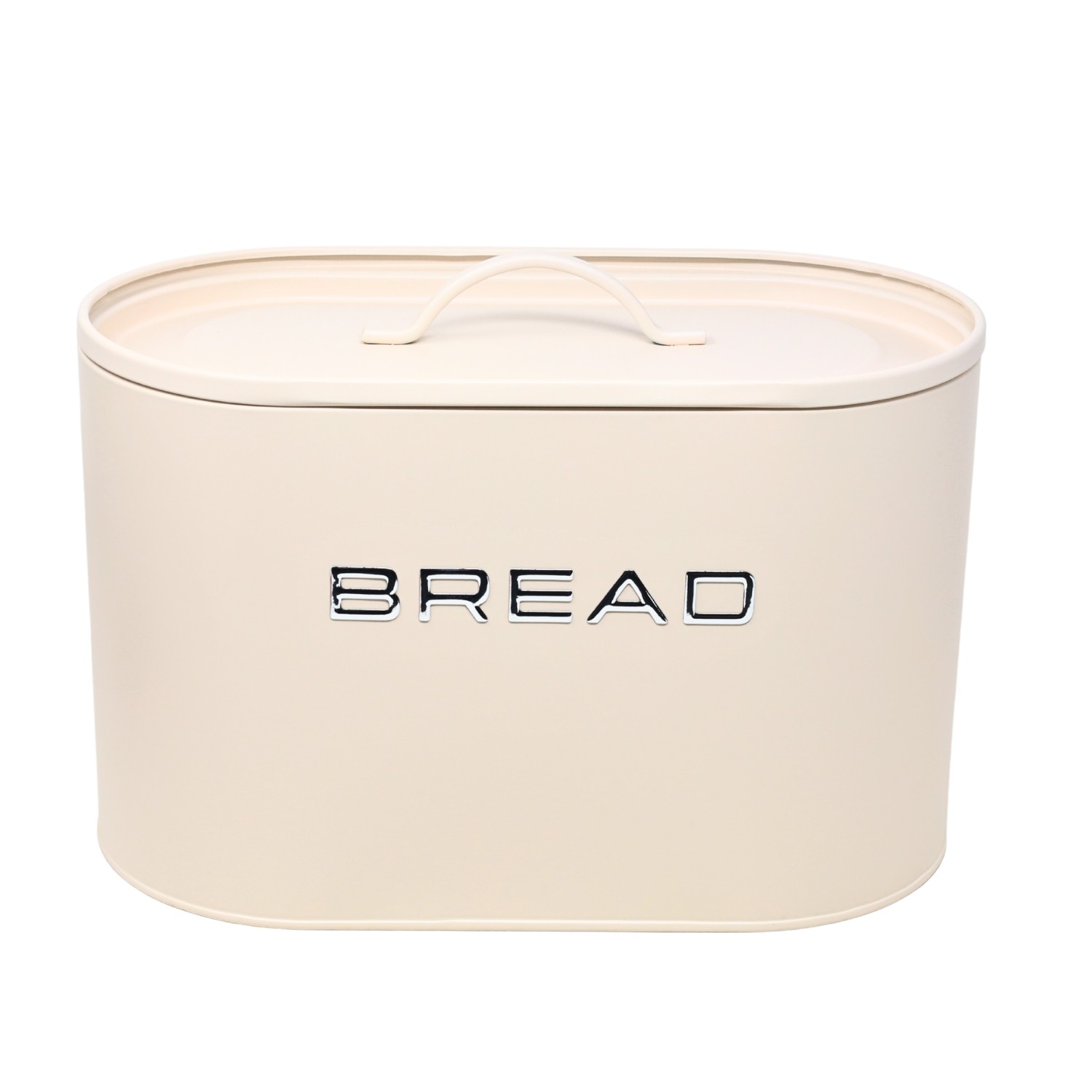 Bread Bin Cream Metal Kitchen Countertop Food Storage Container Airtight Oval
