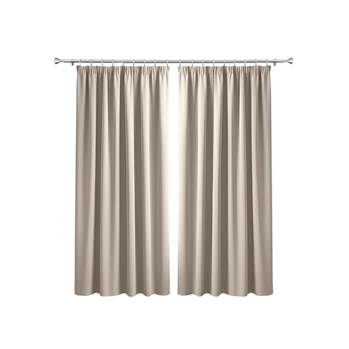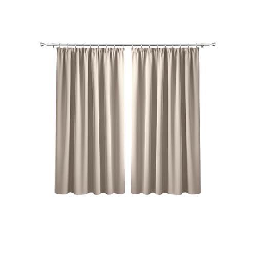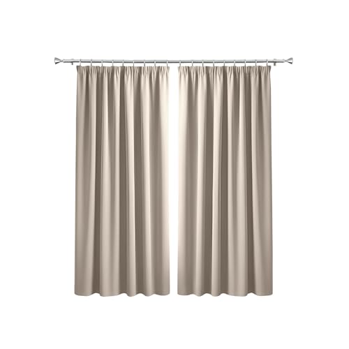 Fusion - Natural Blackout Curtains W46 x L54" (117 x 137cm) - Pencil Pleat Curtains in Cream - 2x Panels - Thermal Curtains for Bedroom & Living Room - Pleated Curtains and Drapes in Light Beige