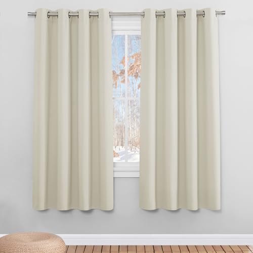 PONY DANCE Eyelet Beige Curtains - Thermal Insulated Privacy Energy Saving Curtains & Drapes, Super Soft Cream Noise Reducing Drapes for Kid's Bedroom Living Room, 46 x 60 Inches, 2 Panels