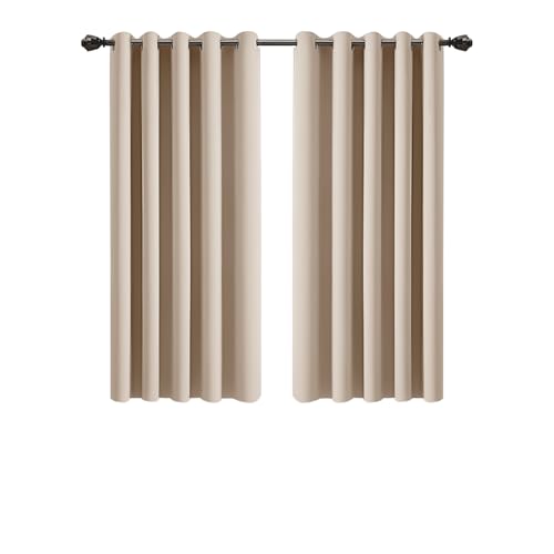DUALIFE Blackout Curtains 52 x 84 Inch Length - Cream Light Beige Grommet Curtain Panels for Bedroom and Living Room Thermal Insulated Room Darkening Curtains 2 Panels