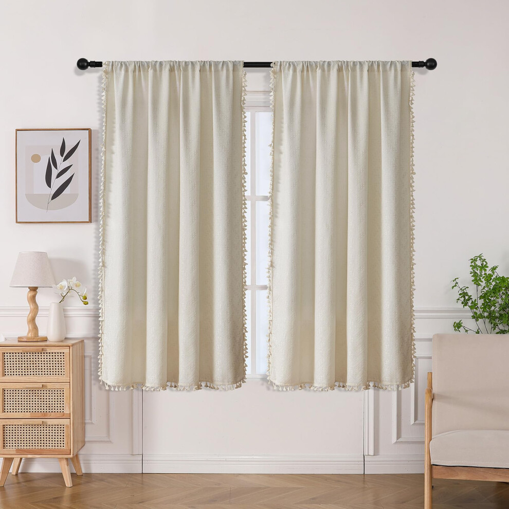 Joydeco Beige Boho Curtains 63 Inch Length 2 Panels Set Cream Boho Curtains for Bedroom Living Room Super Soft Light Filtering Country Rus
