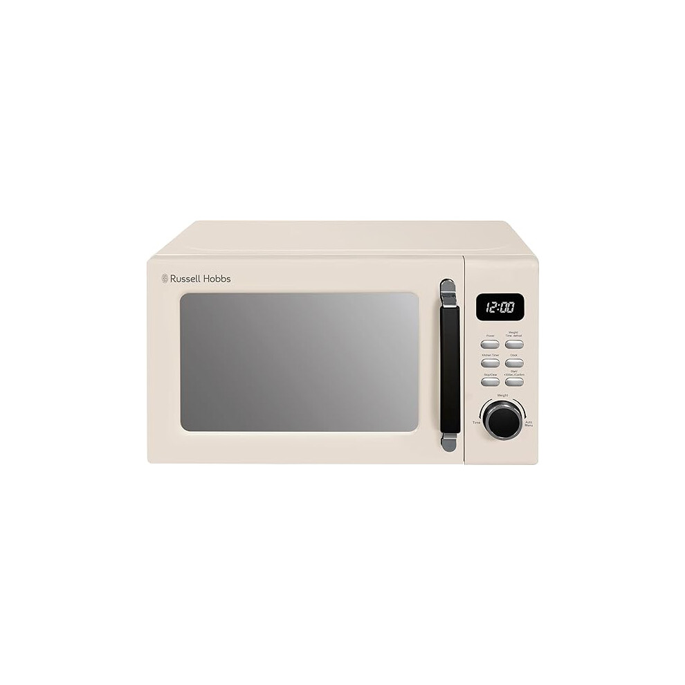 Russell Hobbs Digital Microwave 20L 800W in Cream with 5 Power Levels, Pull Handle Door & Button Control, Clock & Timer, Automatic Defrost, Easy