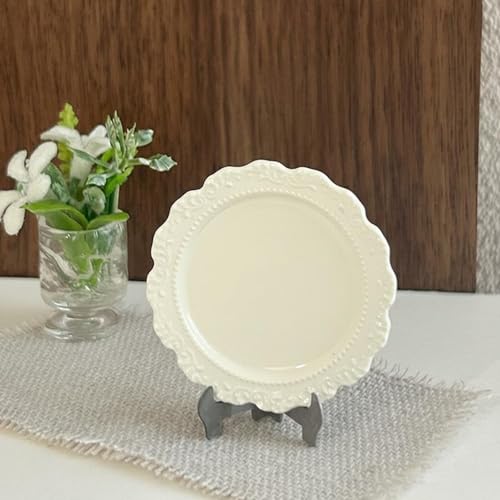 MotiveTech Miniature Dinner Plate Decorative Vintage Design Doll Plate Embossed Detail Miniature Kitchen Tableware Set for Diorama, Cream White, 27 4mm