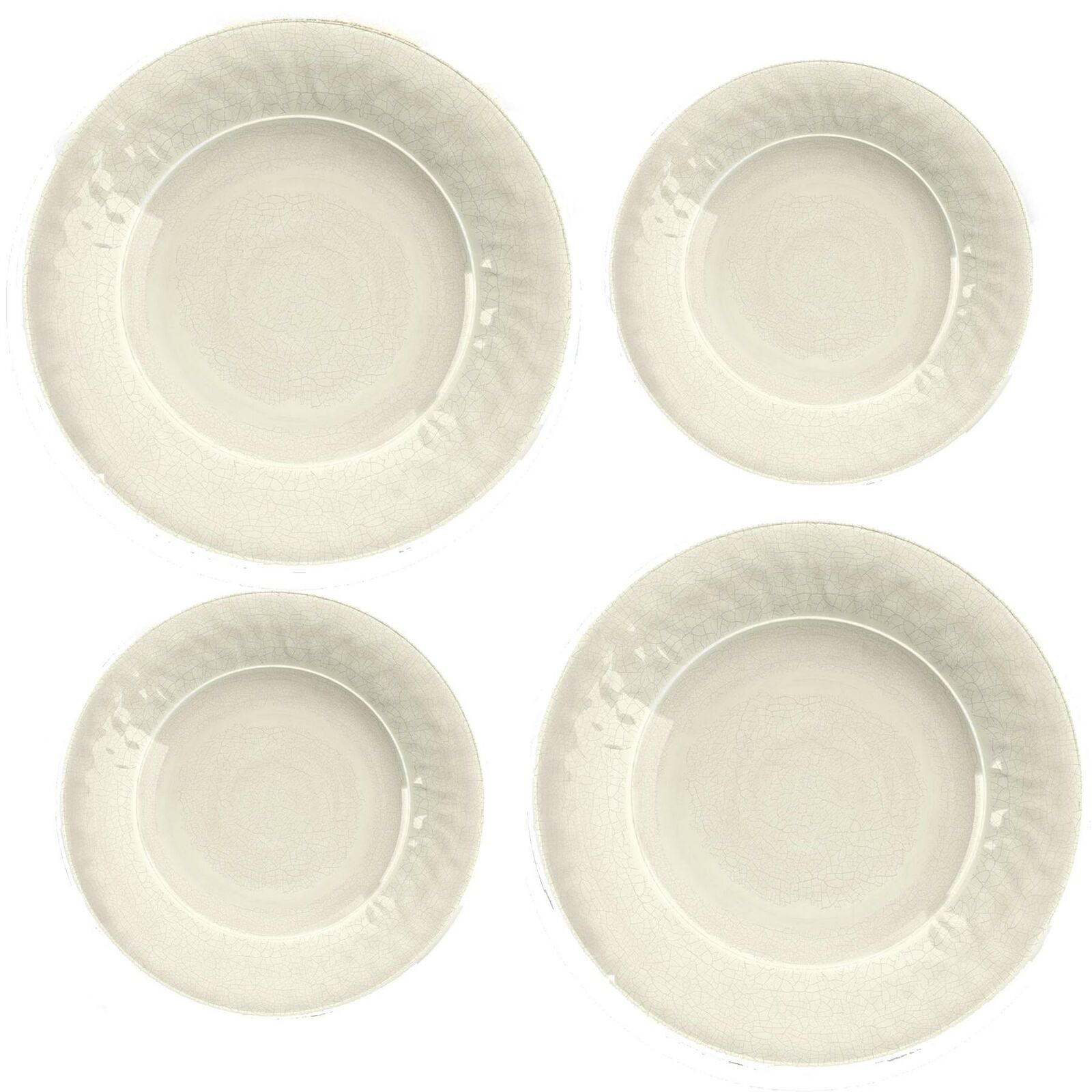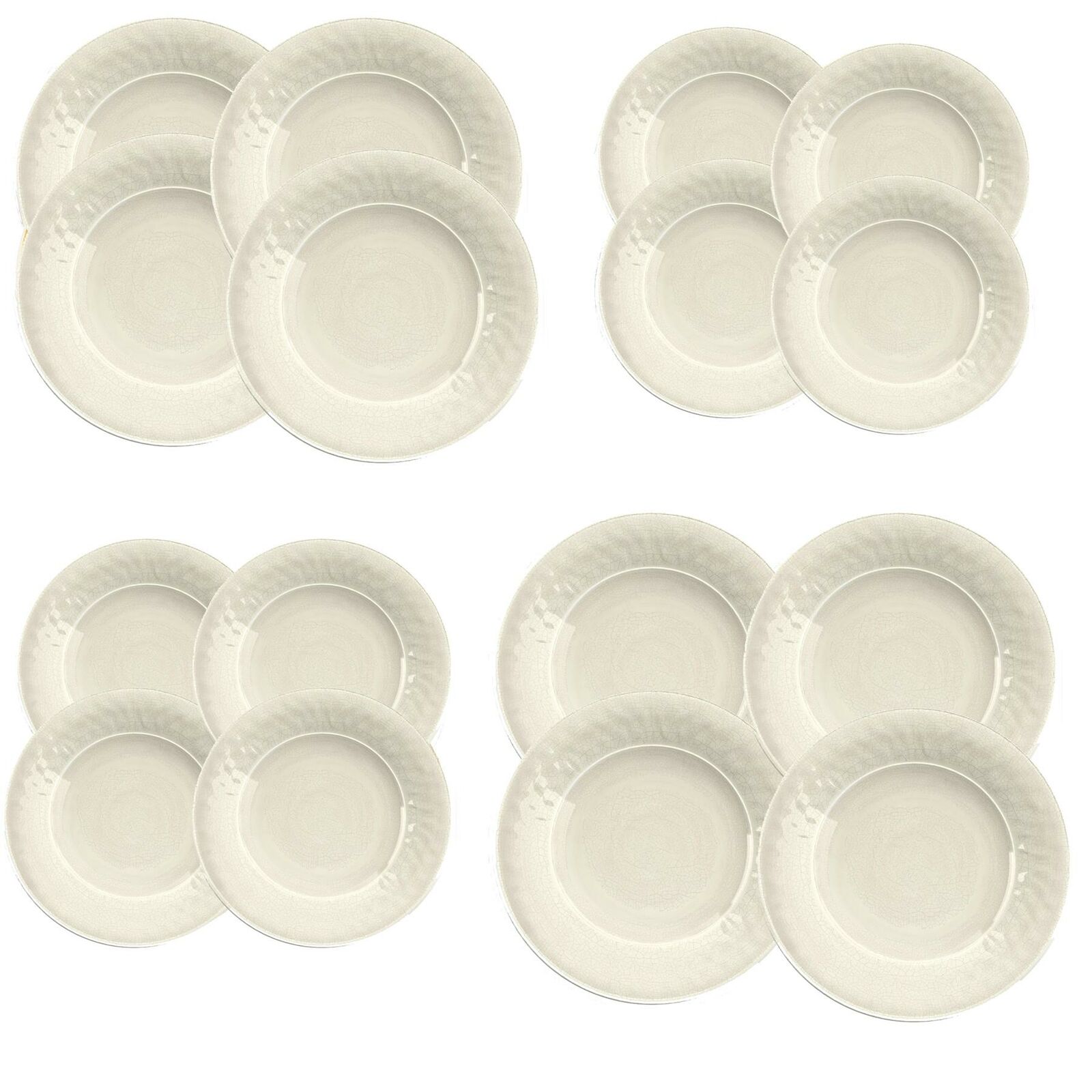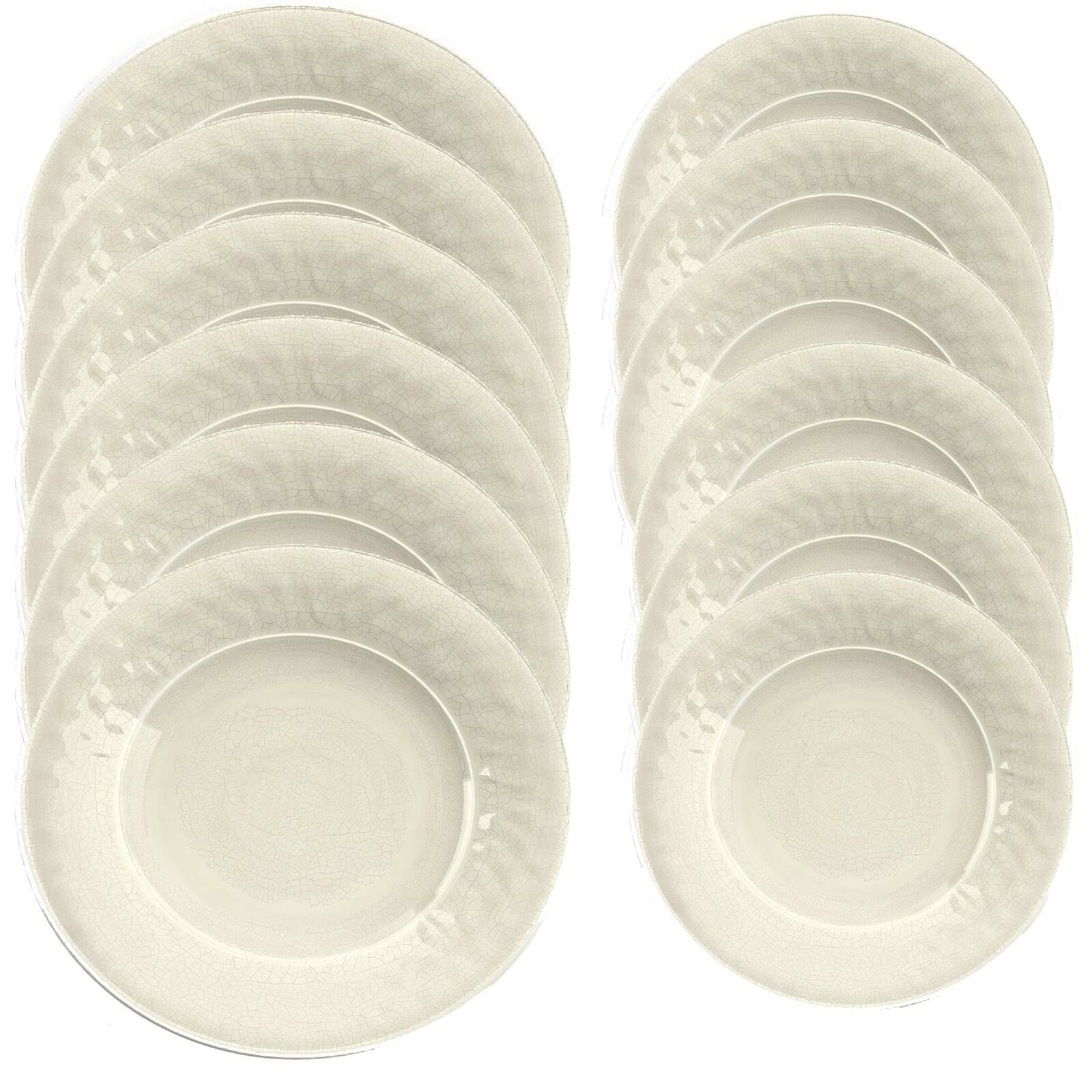 Cream Crackle Glaze 16Pc Melamine Plates Set - 8 Dinner Plates & 8 Side Plates