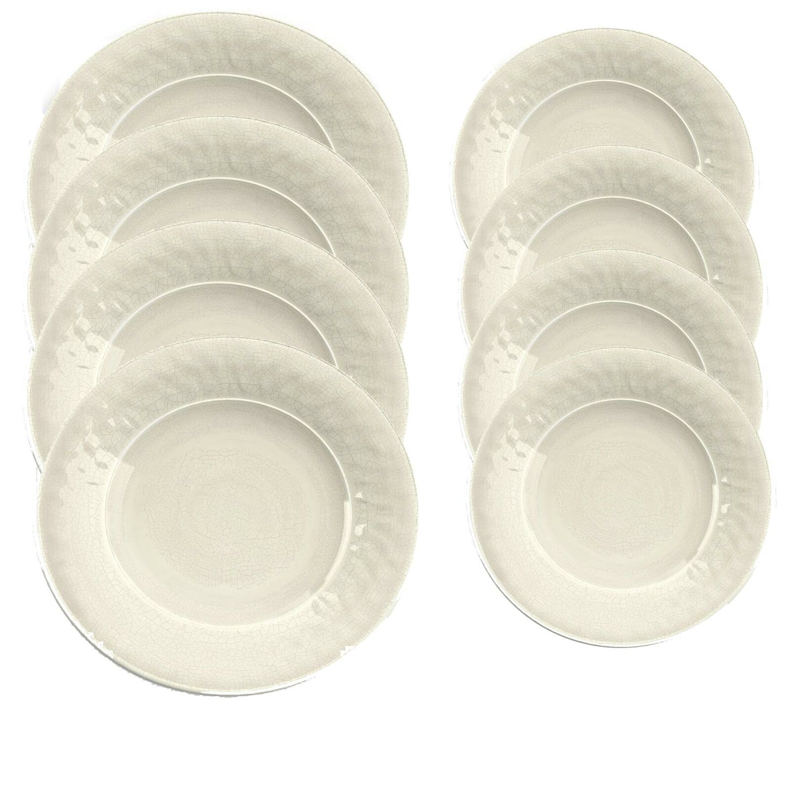 Cream Crackle Glaze 8Pc Melamine Plates Set - 4 Dinner Plates & 4 Side Plates
