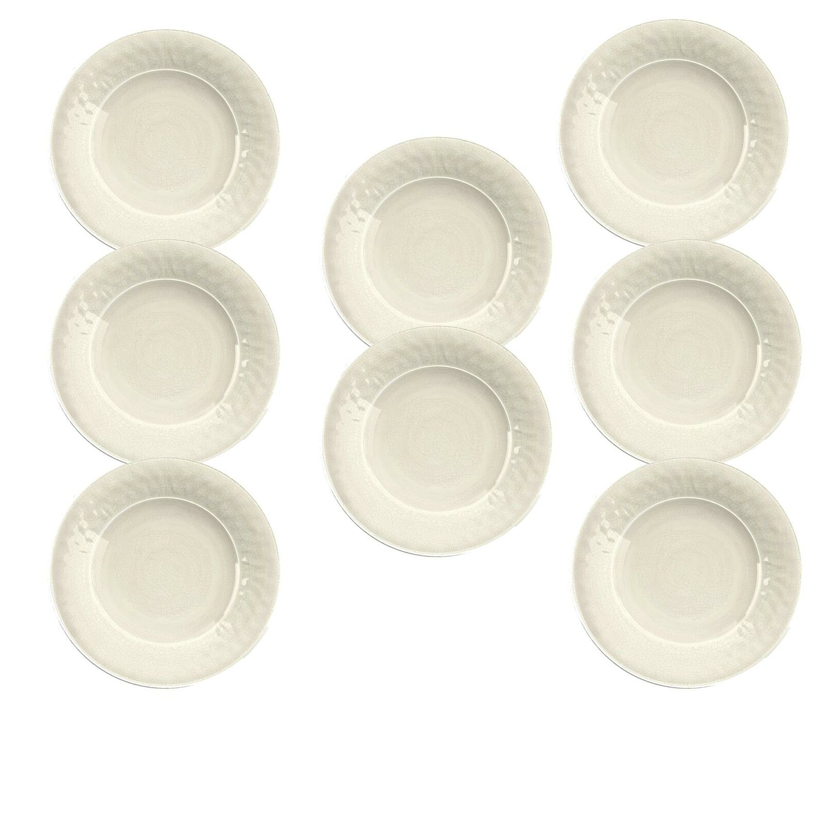 Cream Crackle Glaze Melamine/Plastic Dinner Plates Set - Pack of 8 Plates