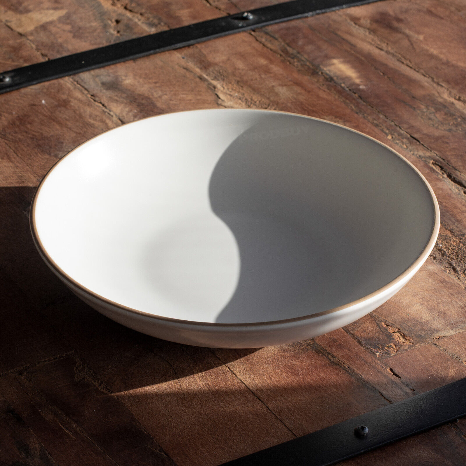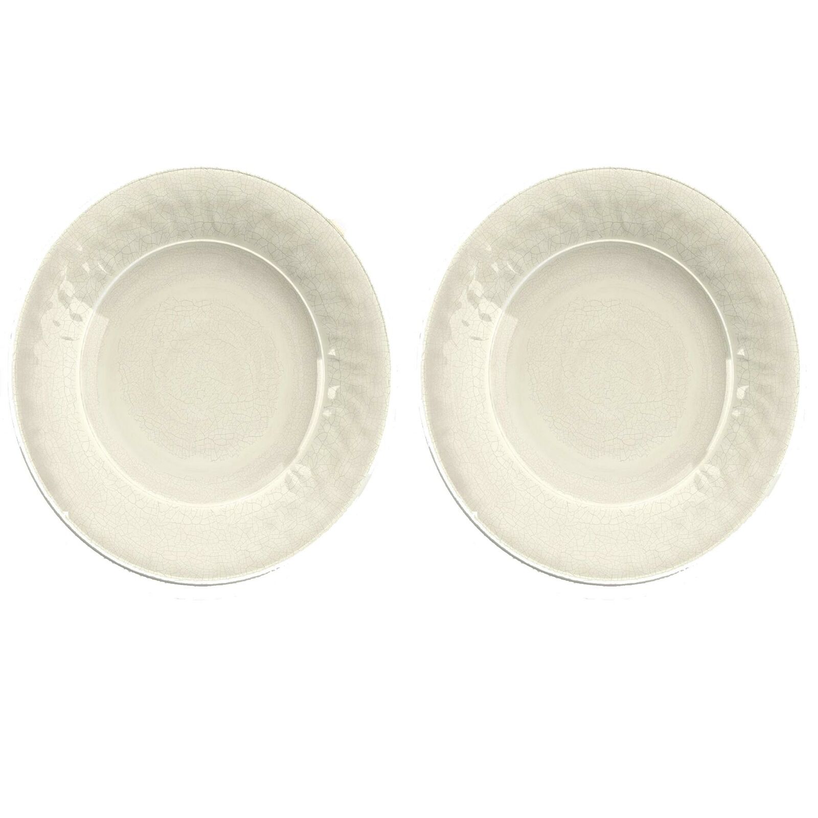 Set of 2 Cream Pasta Bowls 23cm Spaghetti Serving Stoneware Dinner Plate Dishes