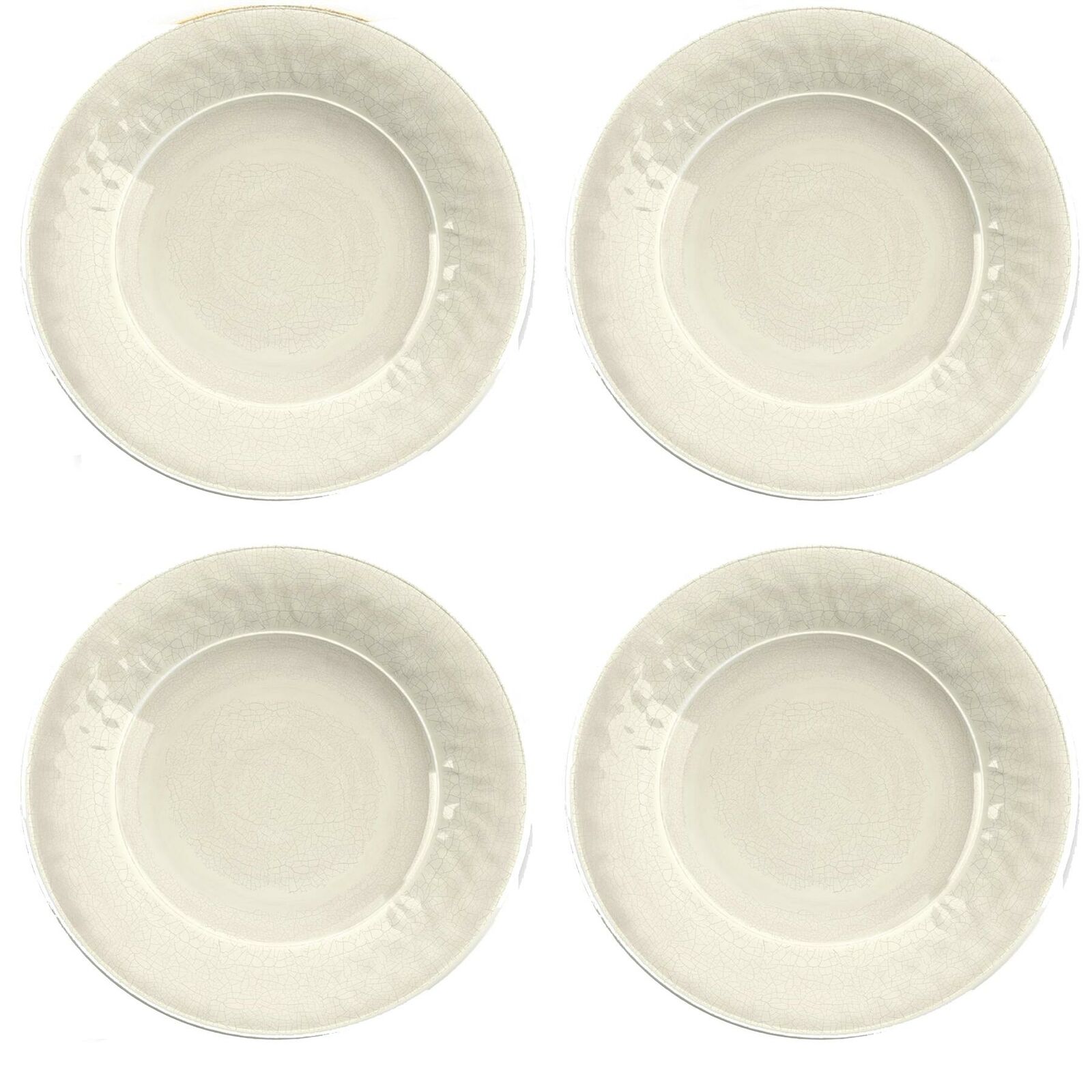 Set of 4 Cream Pasta Bowls 23cm Spaghetti Serving Stoneware Dinner Plate Dishes