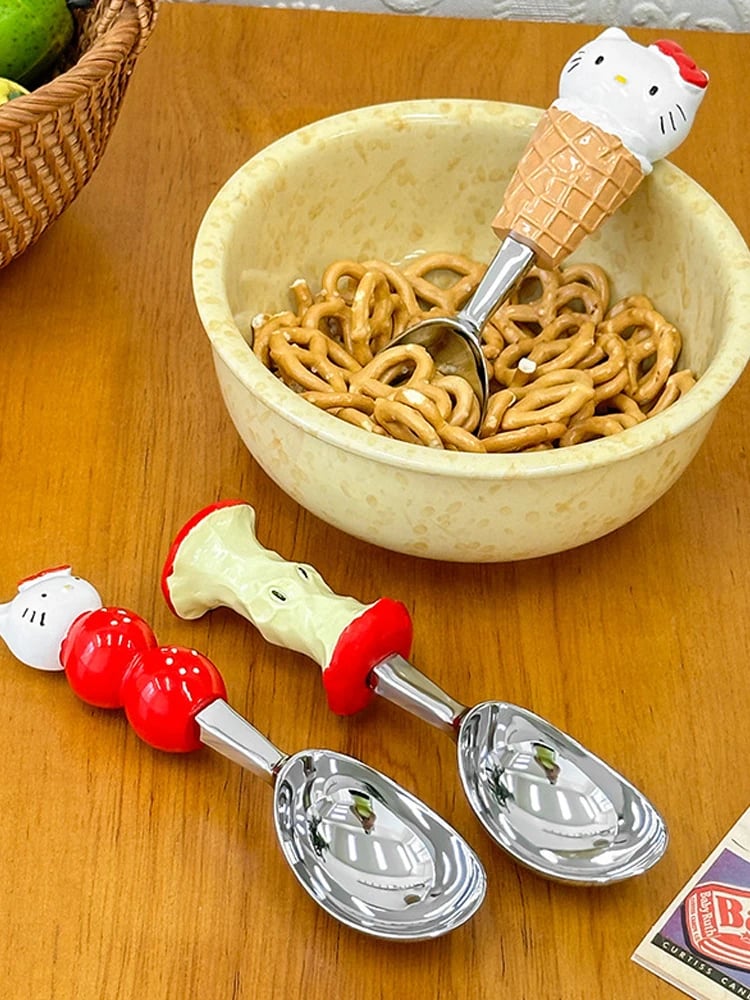 Sanrio Hello Kitty Ice Cream Spoon Kt Cat Creative Stainless Steel Dessert Spoon Dinner Spoon Home Kitchen Cutlery Set Gifts