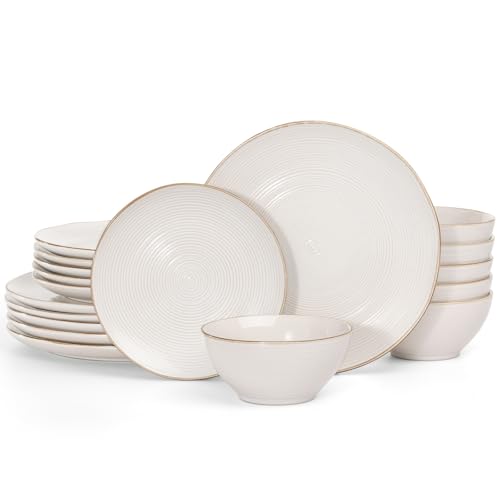 vancasso Navia Dinner Sets for 6 People, 18 Piece Rustic Stoneware Plates and Bowls Set, Kitchen Crockery Sets, Chip Resistant Dinnerware, Microwave & Dishwasher Safe, Speckled Cream