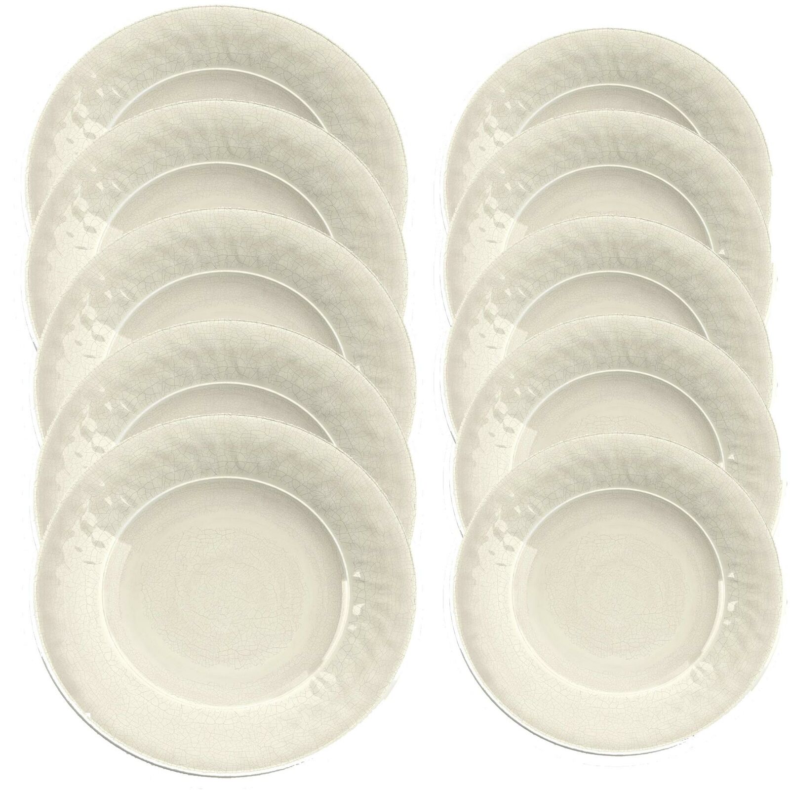 Cream Crackle Glaze 12Pc Melamine Plates Set - 6 Dinner Plates & 6 Side Plates