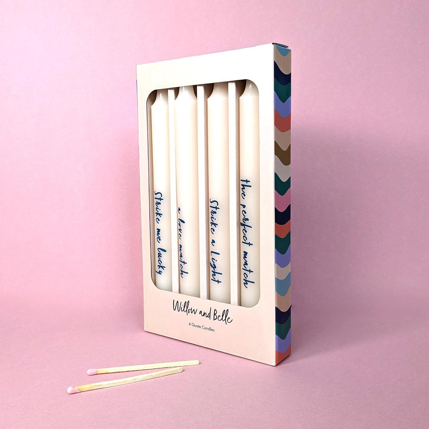 Candle Stick Set Candlestick Cream 4 Dinner Table Candles Gift Box Unscented