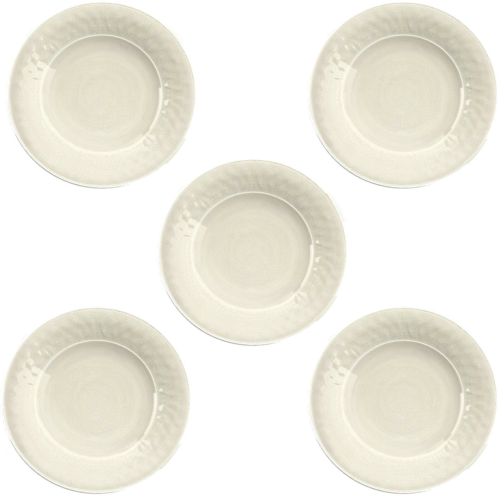 Cream Crackle Glaze Melamine/Plastic Dinner Plates Set - Pack of 5 Plates