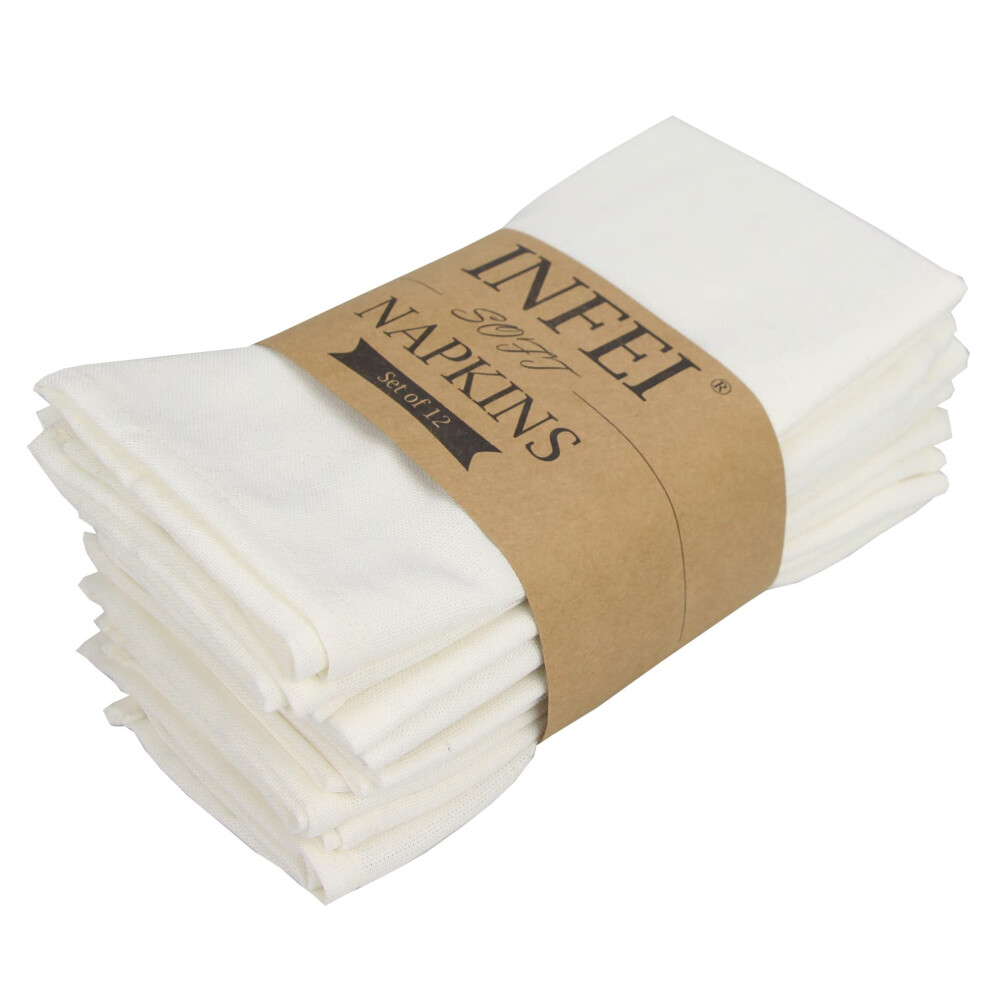 INFEI Solid color cotton Linen Blended Thin Dinner cloth Napkins - Set of 12 40 x 40 cm - for Events Home Use cream