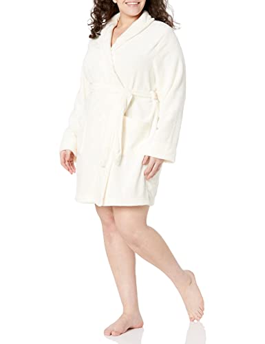 Amazon Essentials Women's Mid-Length Plush Dressing Gown - Discontinued Colours, Cream, 3XL Plus