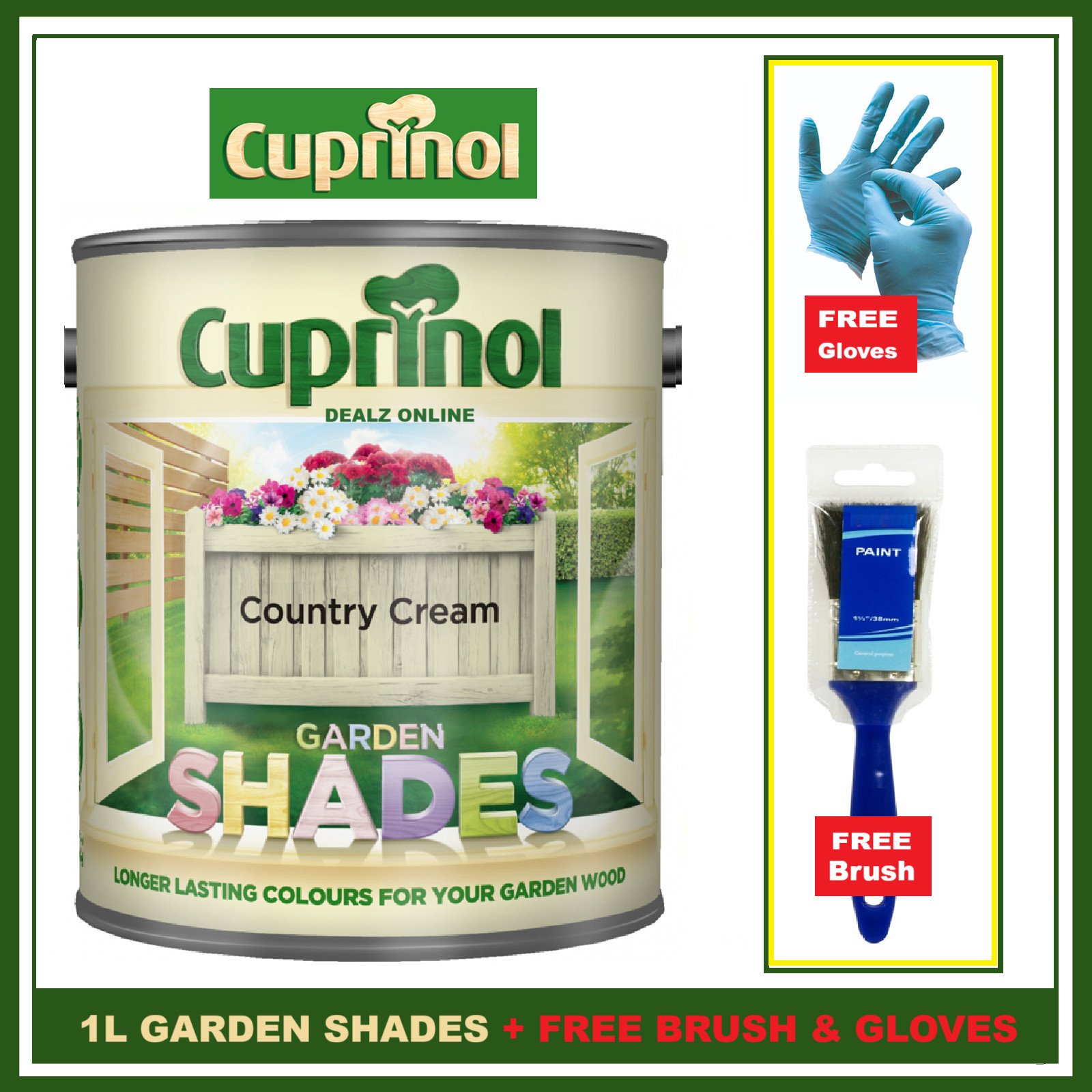 Cuprinol COUNTRY CREAM Garden Furniture Sheds Wood Paint + FREE BRUSH &