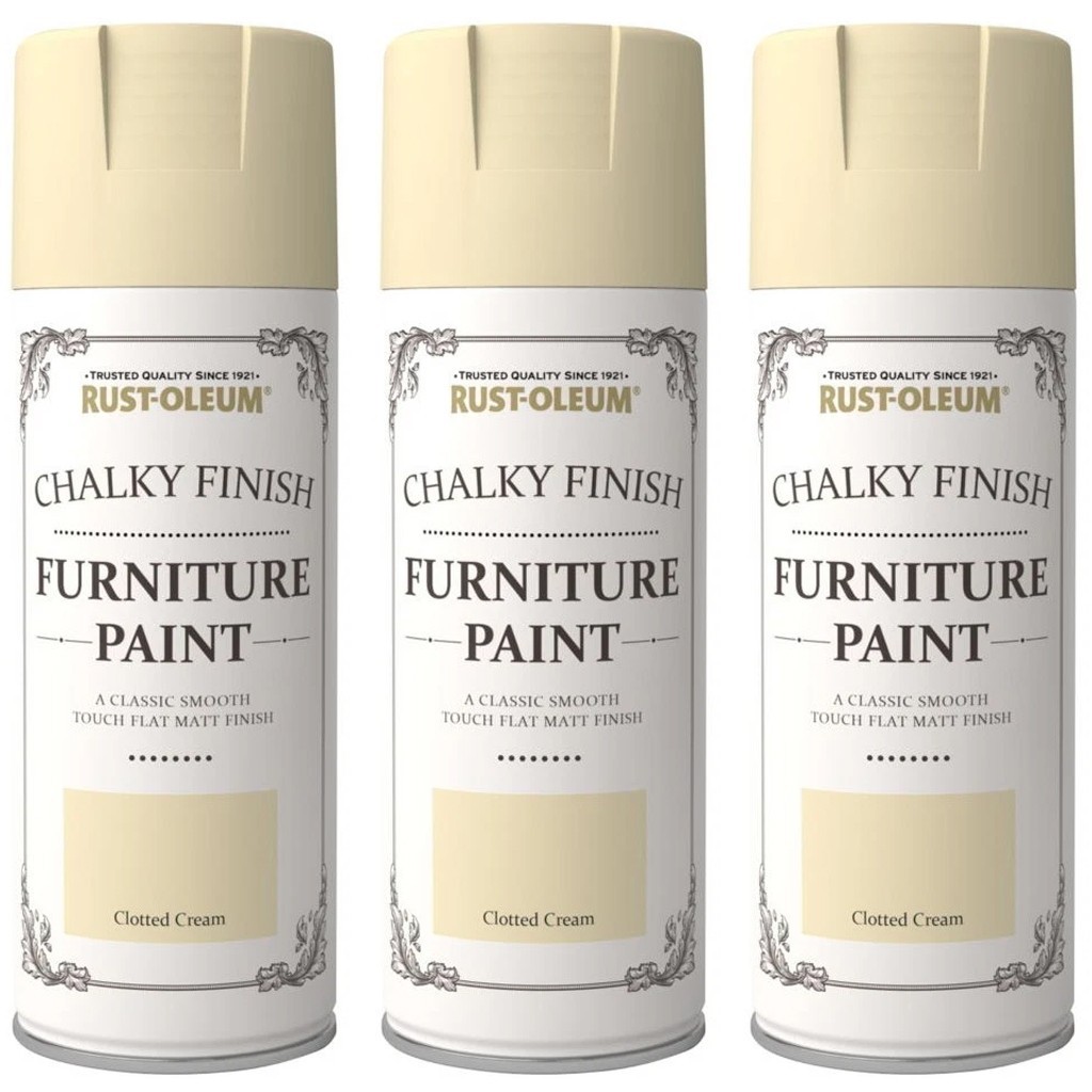 x3 Rust-Oleum Chalk Chalky Furniture Spray Paint Shabby Chic 400ml Clotted Cream