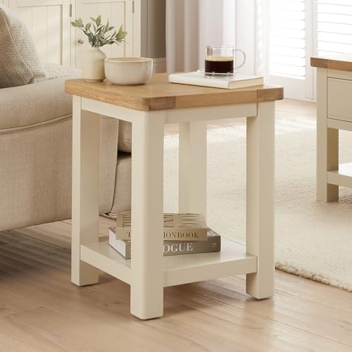 The Furniture Market Marbury Cream | Painted Lamp Table | Wooden Side Table with Shelf | Whitewash Oak Top | Modern Country Styling | Fully Assembled | H 550 x W 450 x D 450mm