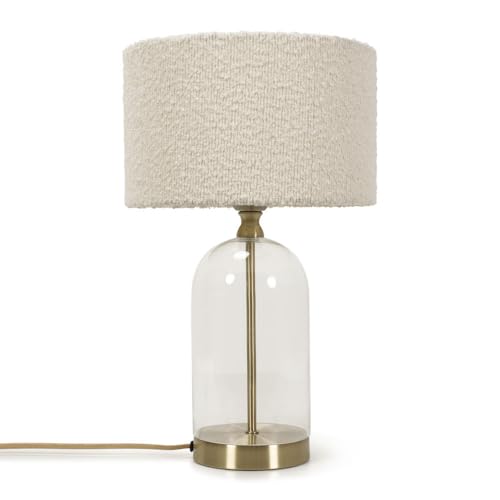 ValueLights | Glass and Gold Metal Table Lamp with a Cream Boucle Lampshade | Table Lamps, Home Décor & Improvement Essential | Includes 4W LED Bulb [3000K Warm White]