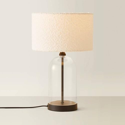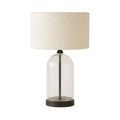 ValueLights | Glass and Black Metal Bedside Table Lamp with a Cream Boucle Lampshade + LED Bulb | Home Décor, Bedside & Desk Lamp | Includes Bulb