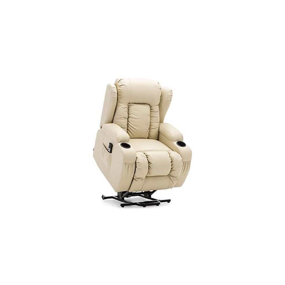 Elite Care Hainworth Leather Dual Motor riser recliner chair rise lift with heat and massage (Cream)