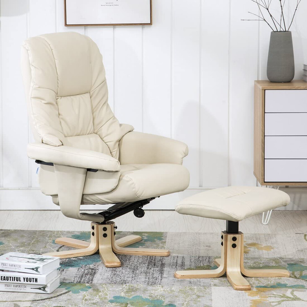 Cream leather swivel recliner chair