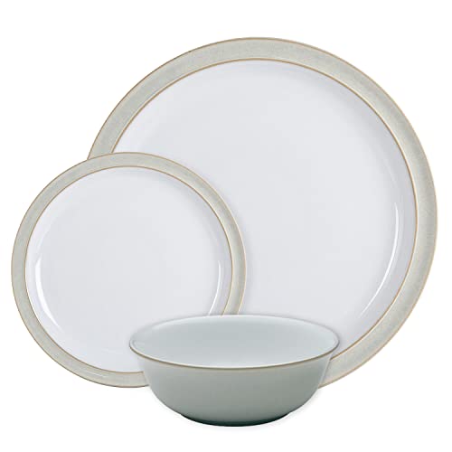 Denby - Linen Cream White Dinner Set for 4-12 Piece Ceramic Stoneware Tableware Plate & Bowl Set - Dishwasher Microwave Safe Crockery - Includes 4 x Dinner Plates, Small Plates, Cereal Bowls