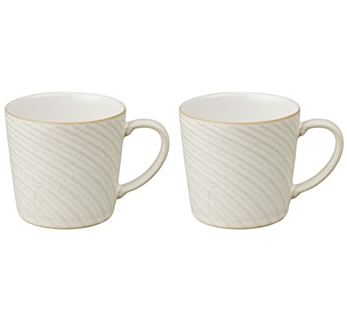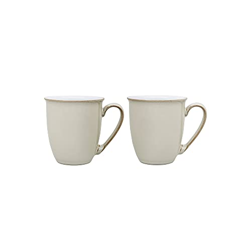 Denby - Linen Cream Coffee Mugs - Set of 2-330ml Stoneware Tea Mug Set - Dishwasher Safe, Microwave Safe