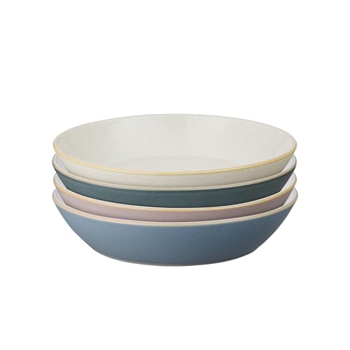 Denby - Impression Mixed Colour Pasta Bowls Set of 4 - Dishwasher Microwave Safe Crockery - Blue, Pink, Cream, Black Ceramic Stoneware Tableware