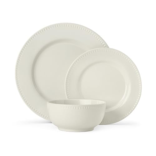 Mikasa Cranborne 12-Piece Cream Stoneware Dining Set | Gift-Boxed Dinnerware Set for 4 with Dinner Plates, Side Plates & Cereal Bowls - Dishwasher and Microwave Safe