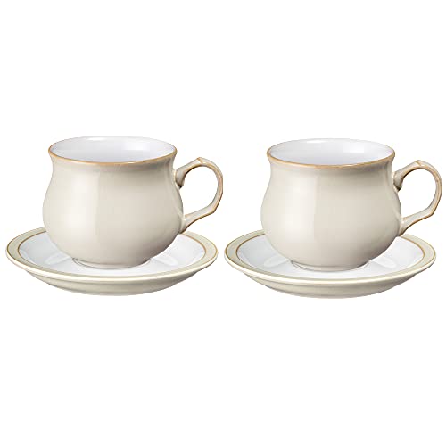Denby - Linen Cream Tea Cup and Saucer Set of 2-200ml Stoneware Coffee Tea Mug and Saucer Set - Dishwasher Safe, Microwave Safe