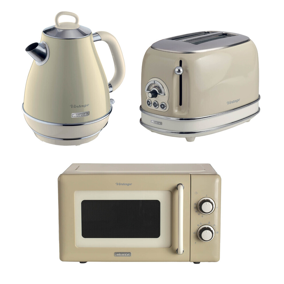 Ariete Vintage 1.7L Jug Kettle, 2 Slice Toaster & Microwave Cream Set