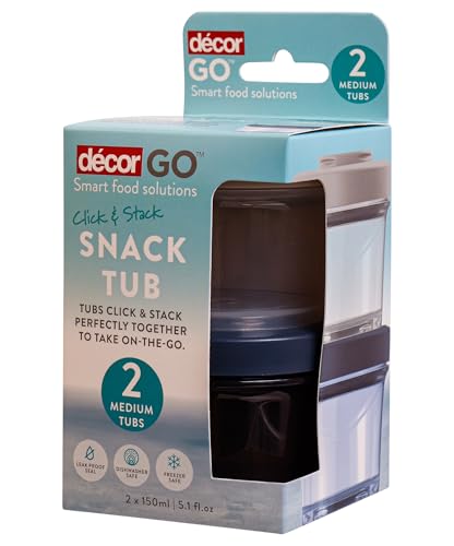 Décor Go Click & Stack Snack Tubs, 2 Pack Leakproof Food Storage Containers, Snack Tubs for Adults and Kids, Freezer & Microwave Safe, 150ml x 2 - navy/grey and cream