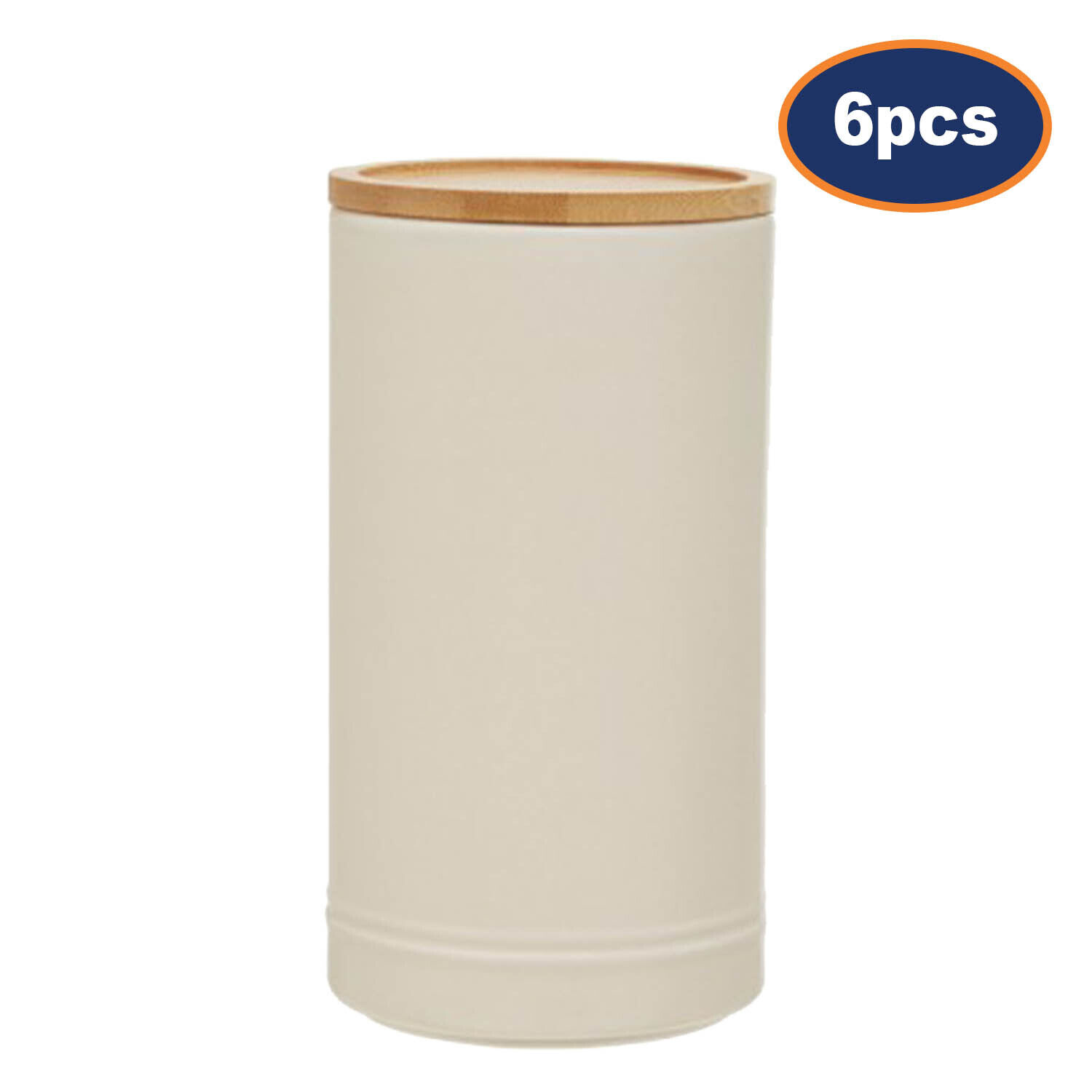 Pack of 6 1450ml Cream Stoneware Kitchen Pasta Rice Biscuit Storage Canisters