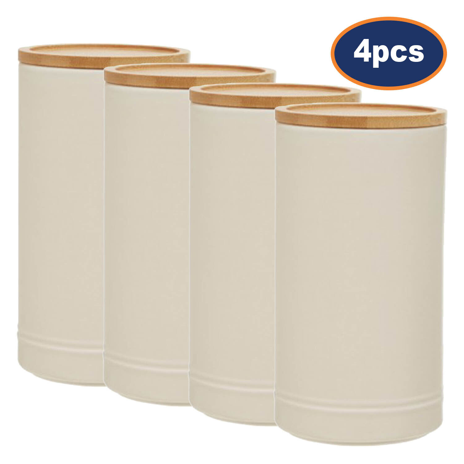 Pack of 4 1450ml Cream Stoneware Kitchen Pasta Rice Biscuit Storage Canisters