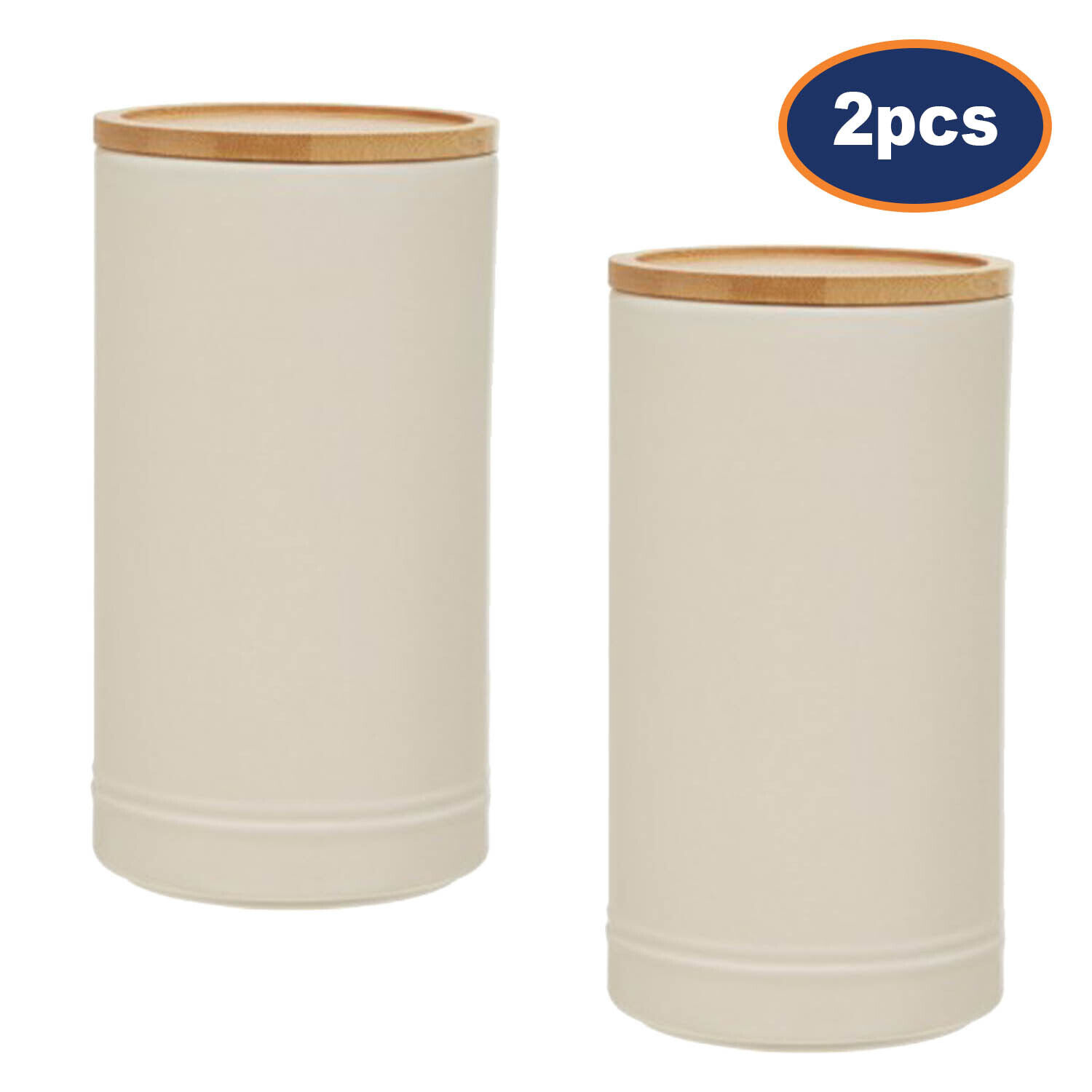 Pack of 2 1450ml Cream Stoneware Kitchen Pasta Rice Biscuit Storage Canisters