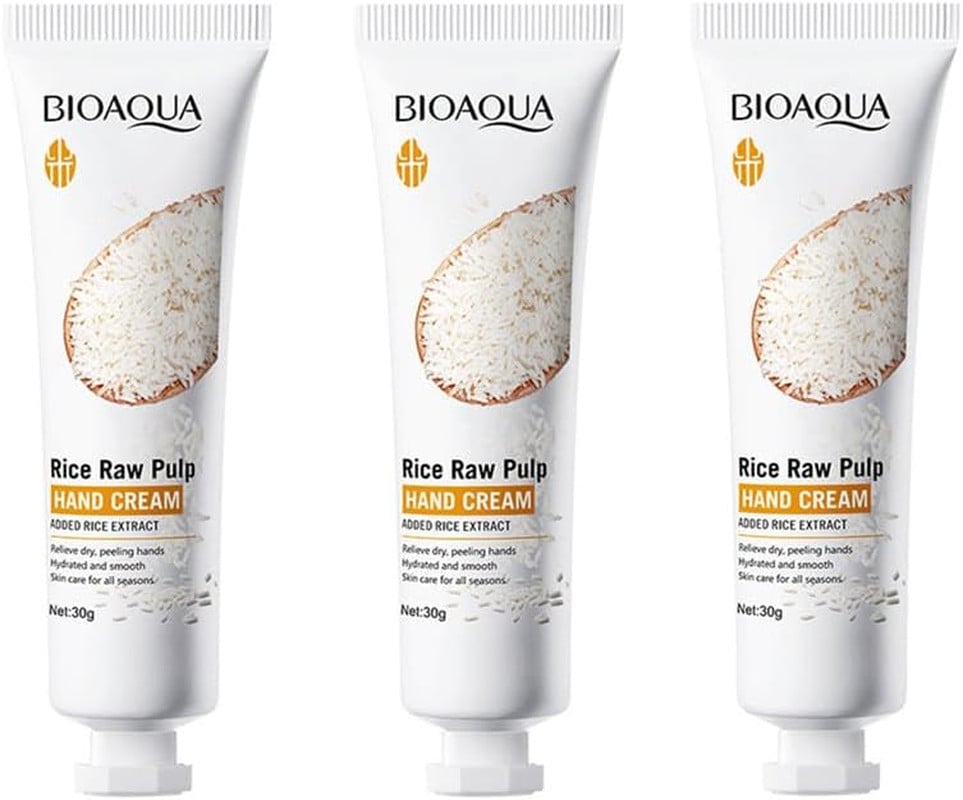 3PCS Rejuvenating Hand Cream Rice Raw Pulp Hydration Hand Cream Moisturizer 30G