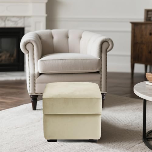 WHOROB Ottoman Cover Stretch Velvet, Footstool Cover and Pouffe Cover Non-slip with Elastic Bottom/ties, Slipcover for Folding Storage Poofy Foot Stool (Cream,Square-L Ottoman)
