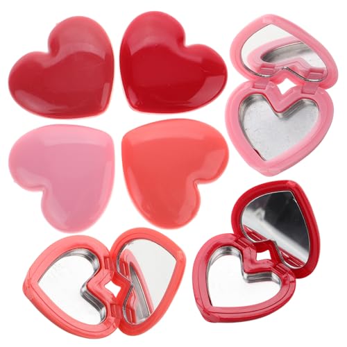 Healeved 8pcs Heart Shape Lip Balm Box Mirror Refillable Cream Containers for Travel Pink and Red Aluminum Pans Suitable for Makeup Storage
